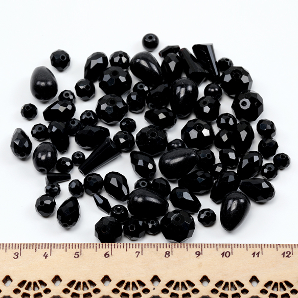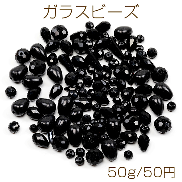 ガラスビーズ ミックス ブラック (約50g)