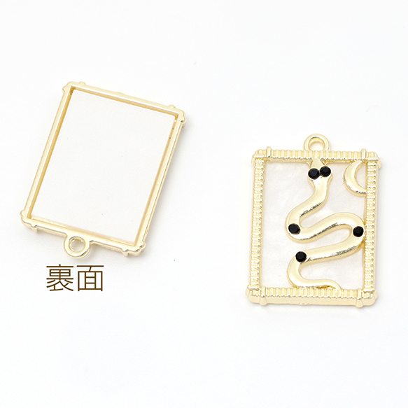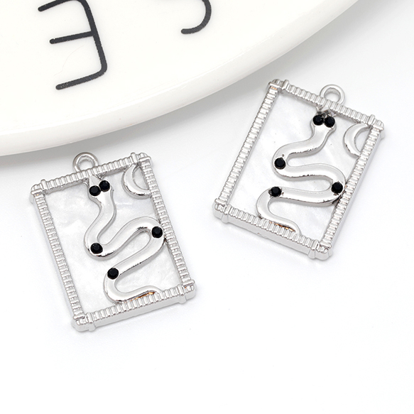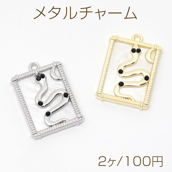 メタルチャーム ヘビ 蛇 ペンダント 幾何学 長方形 約15×21mm(2ヶ)