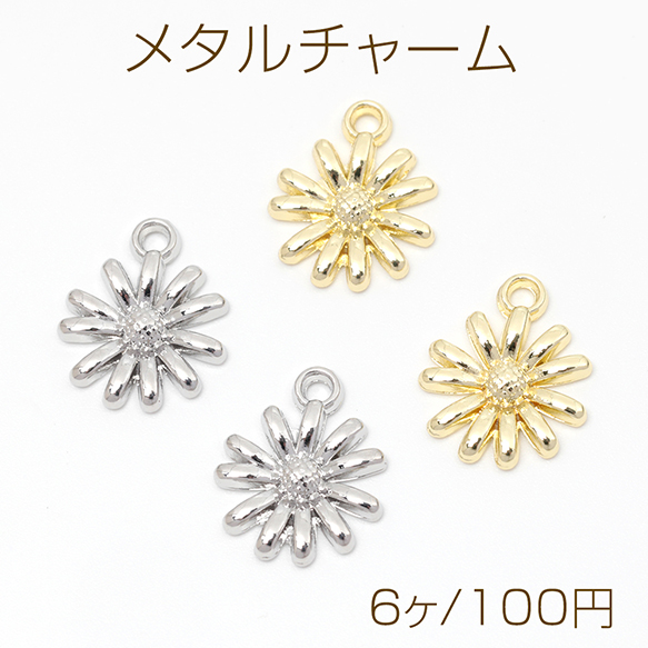 メタルチャーム フラワー 合金製 約 12×15mm(6ヶ)