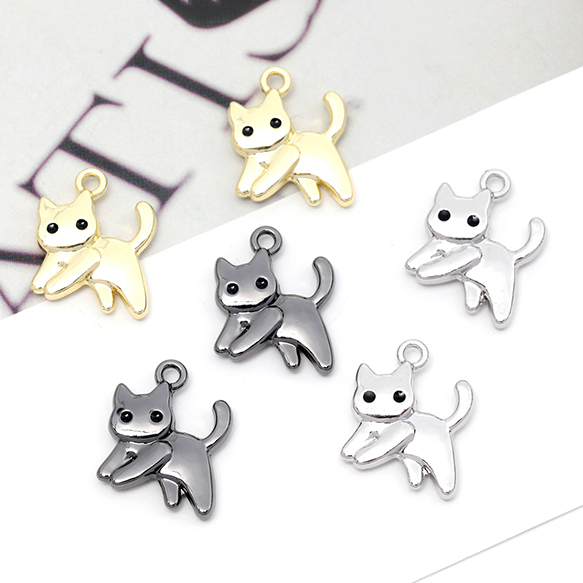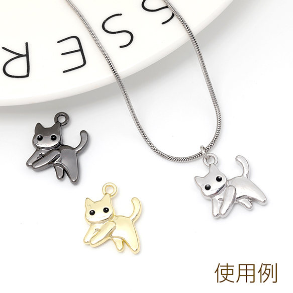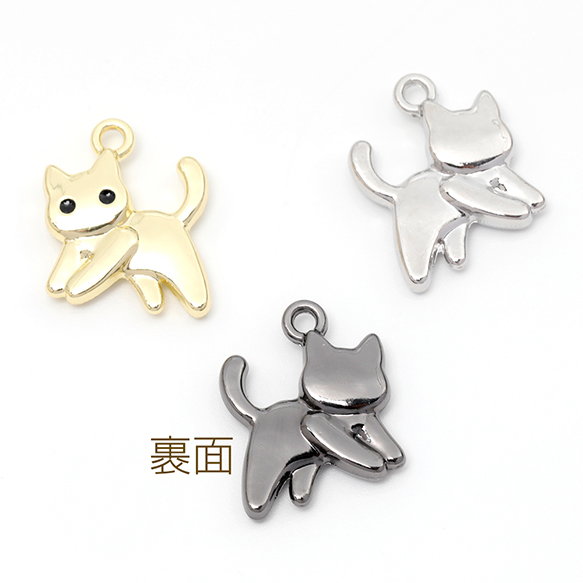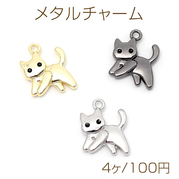 メタルチャーム 猫 キャット 合金製 約15×18mm(4ヶ)