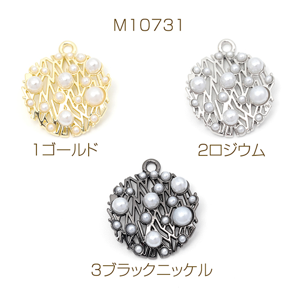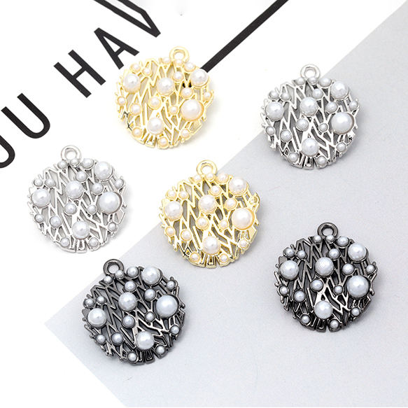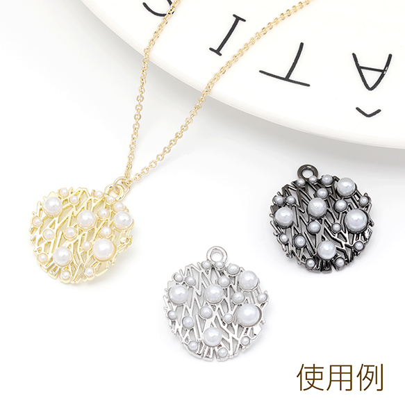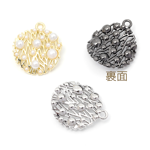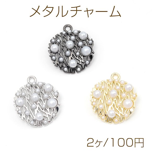 メタルチャーム ラウンド 透かしチャーム パール付き 合金製 約19×22mm(2ヶ)