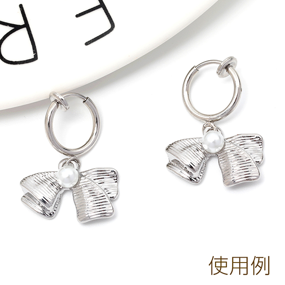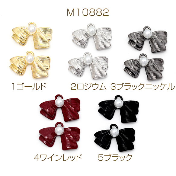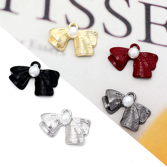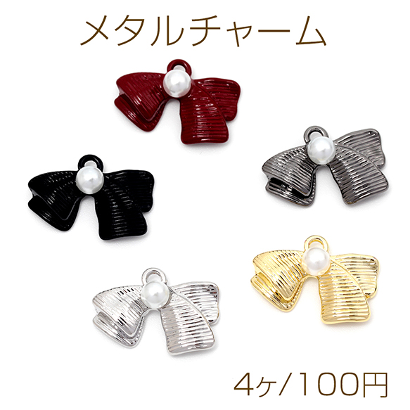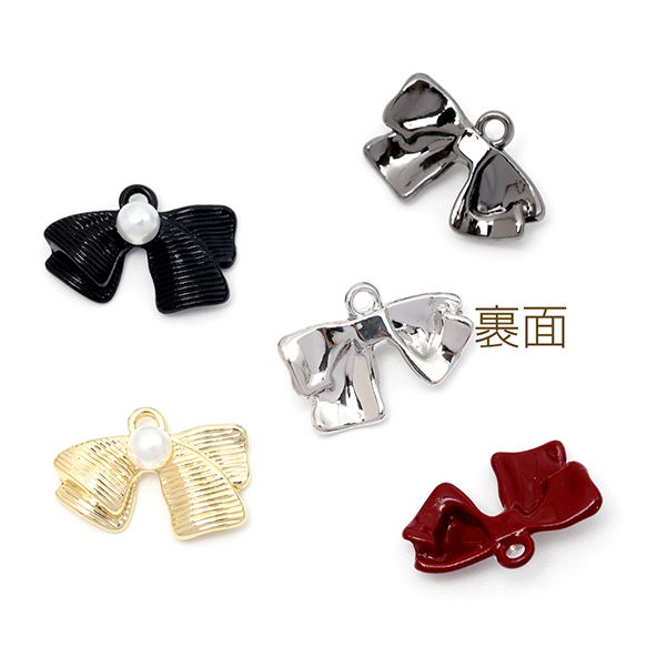 メタルチャーム リボン 透かしチャーム パール付き 合金製 約12×18mm(4ヶ)