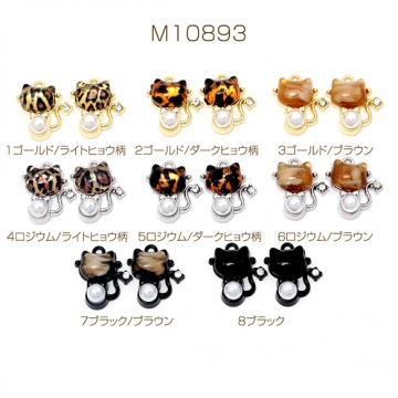 メタルチャーム 猫 キャット パール付き 合金製 約16×18mm(2ヶ)
