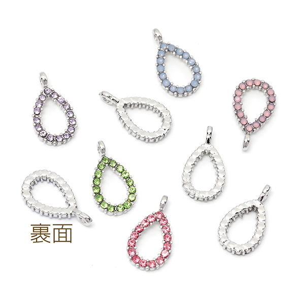 ラインストーンチャーム 石付きチャーム 透かしチャーム 雫型 合金製 約8×15mm(4ヶ)
