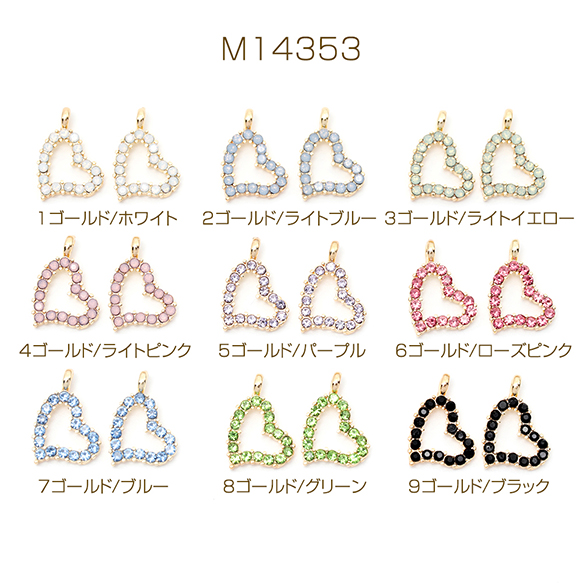 ラインストーンチャーム 石付きチャーム 透かしチャーム ハート 合金製 約9×13mm(4ヶ)
