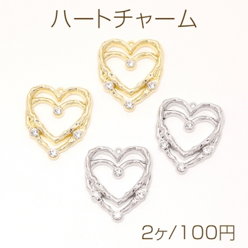 ラインストーンチャーム 石付きチャーム 透かしチャーム ハート 合金製 約10×12mm(4ヶ)