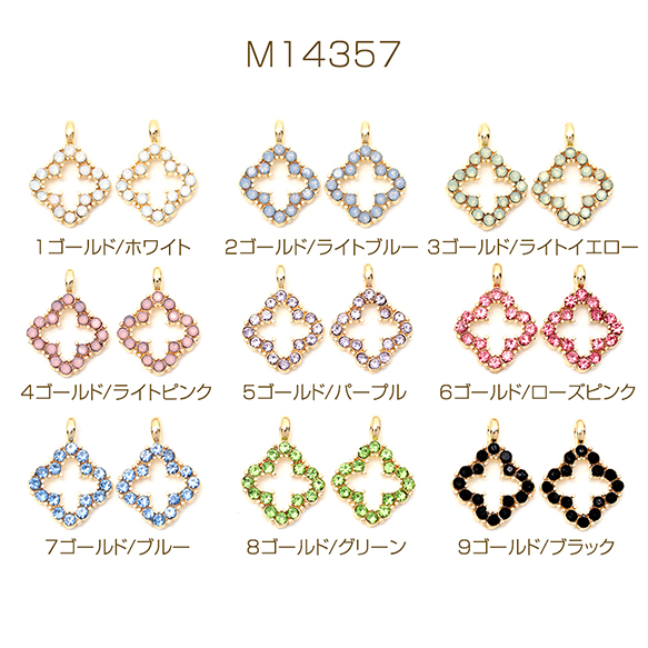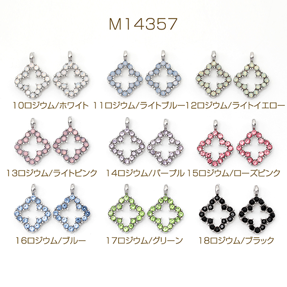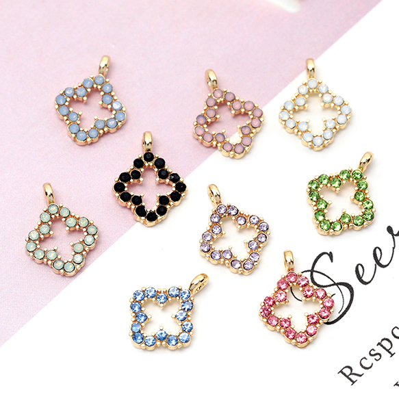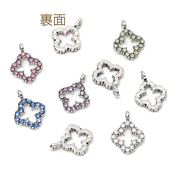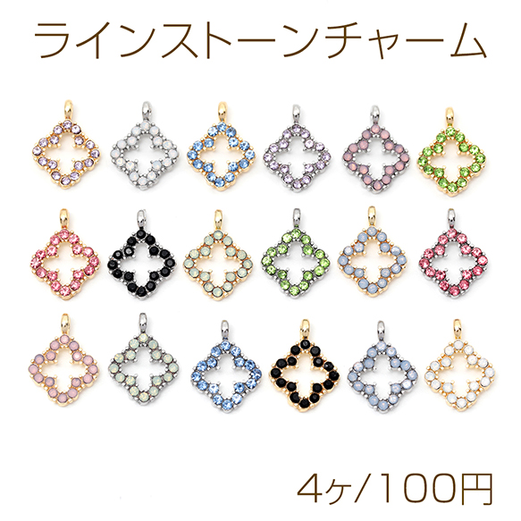 ラインストーンチャーム 石付きチャーム 透かしチャーム クローバー 四つ葉 合金製 約10×13mm(4ヶ)