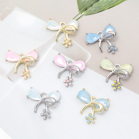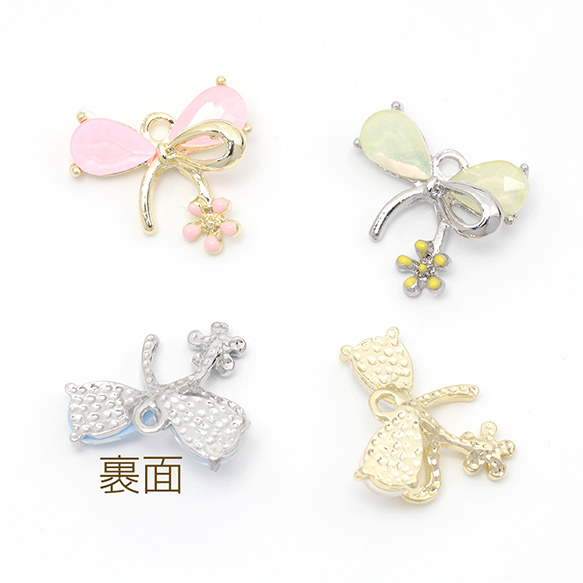 メタルチャーム 蝶チャーム 樹脂チャーム フラワー オーロラ 合金製 約16×17mm(2ヶ)