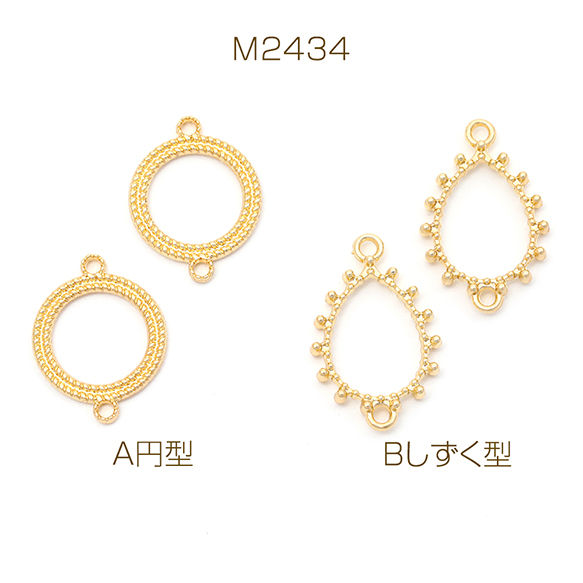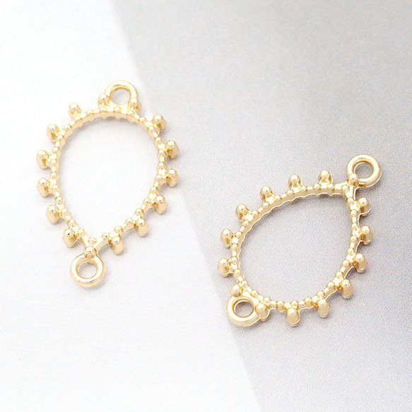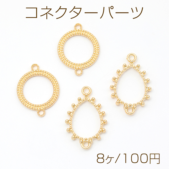 コネクターパーツ フレームチャーム 円型/しずく型 つなぎパーツ 接続金具 上下2カン付き ゴールド 全2種(8ヶ)