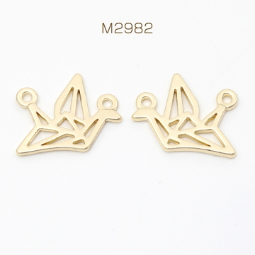 コネクターパーツ 透かしチャーム 折り鶴チャーム 鳥 和風 接続金具 左右2カン付き ゴールド 約7×10mm(8ヶ)