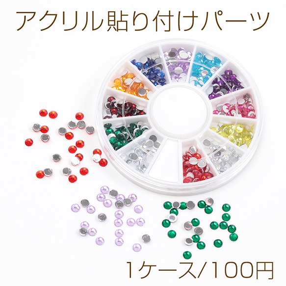 貼り付けパーツ アクリルストーン 12色 ネイル ジェルネイル 封入パーツ 約3mm(1ケース)