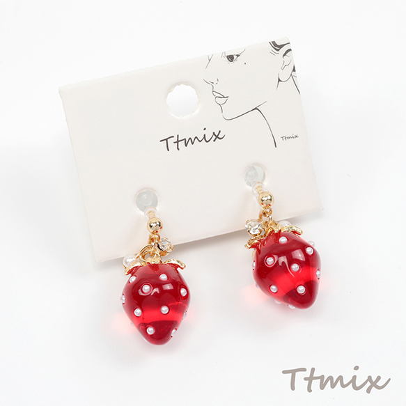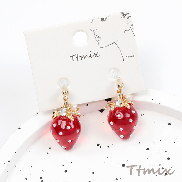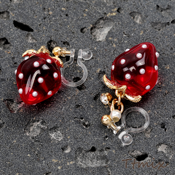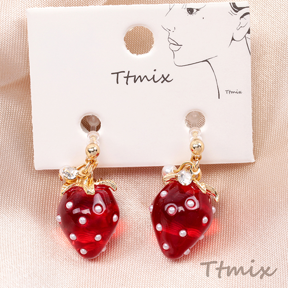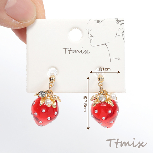 いちごイヤリング 苺イヤリング イチゴイヤリング 樹脂 合金製 約 1×2.5cm (2ヶ)