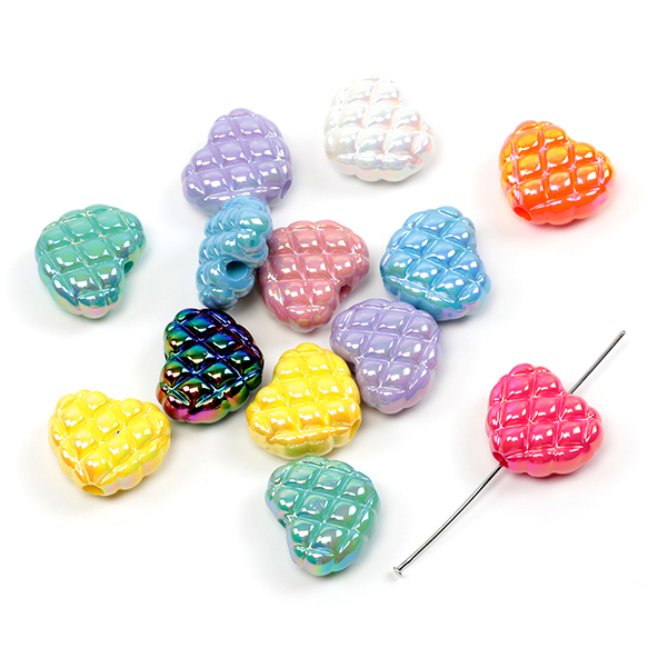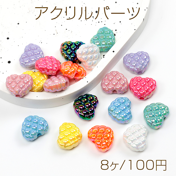 アクリルパーツ ハート チェック柄 カラーミックス 約17×20mm(8ヶ)