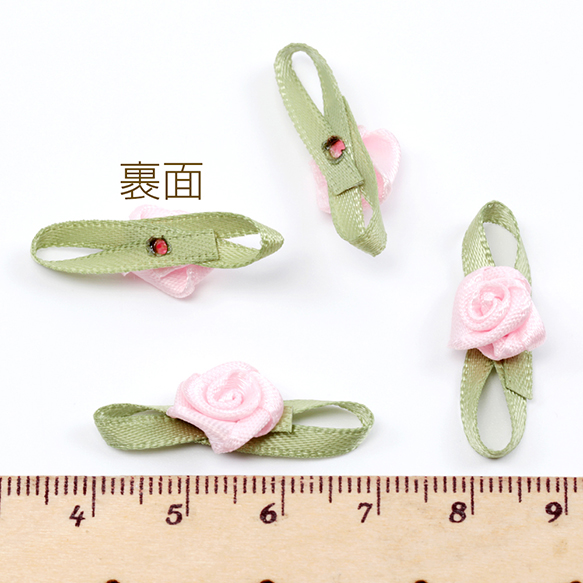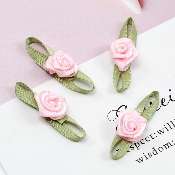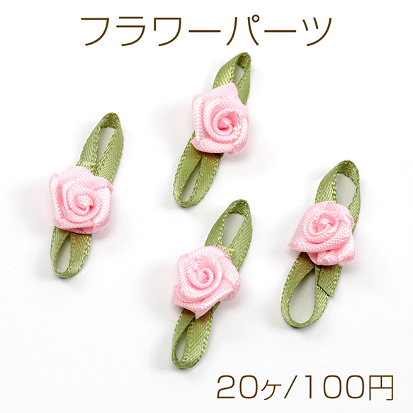 フラワーパーツ リボン 手作りグリーンリーフローズフラワー 約10×29mm(20ヶ)