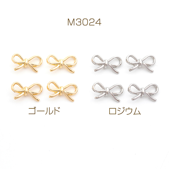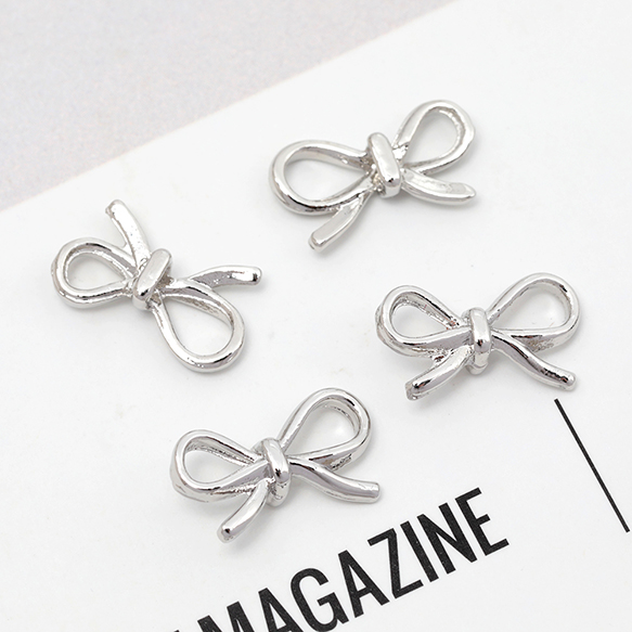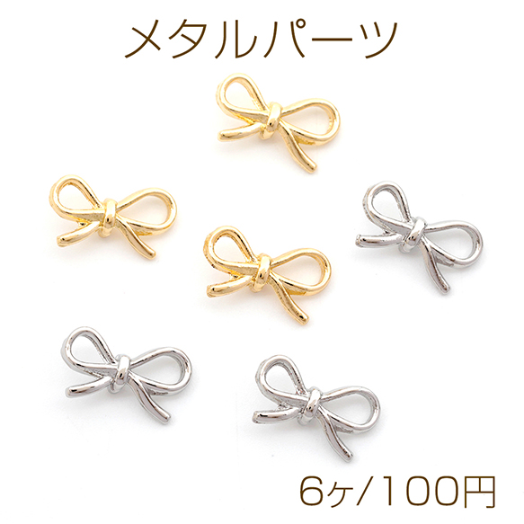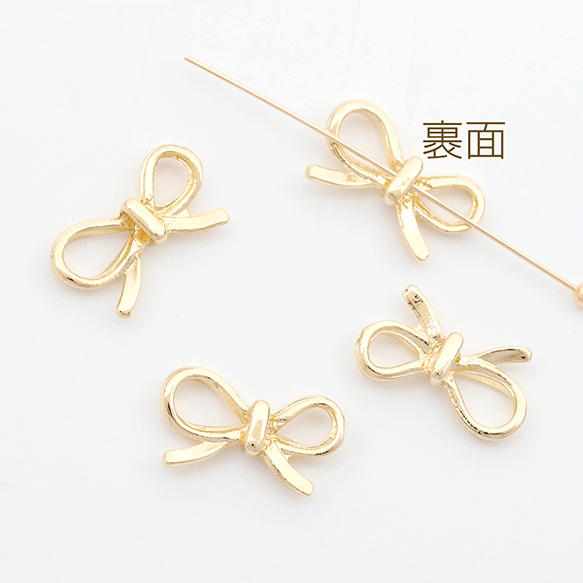 メタルパーツ リボン 裏穴 合金製 約8×13mm(6ヶ)