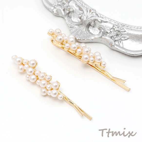 ヘアピン パール付き 華やか エレガント ヘアアクセサリー 約11×53mm(1ヶ)