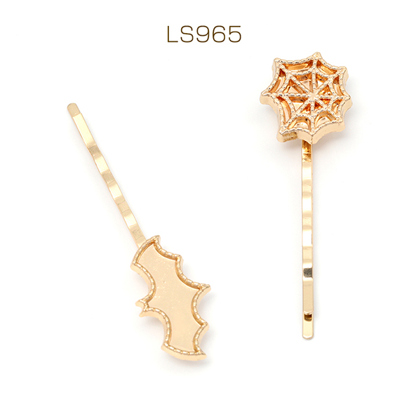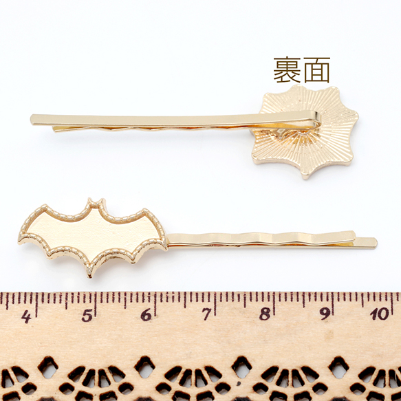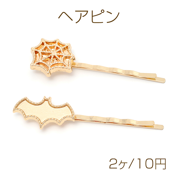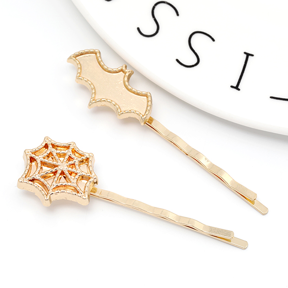 ヘアピン レジン セッティング台付き ミール皿 ハロウィン こうもり クモの巣 ヘアアクセサリー(2ヶ)