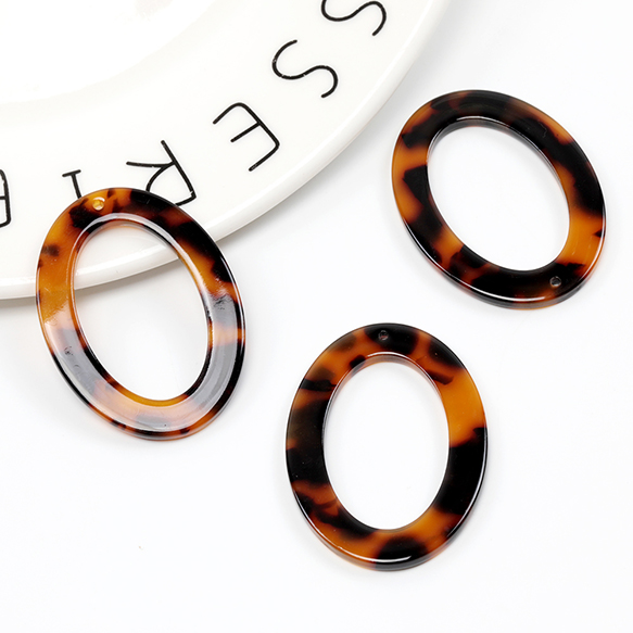 アクリルパーツ 1穴 オーバル べっ甲柄 約15×28mm(10ヶ)