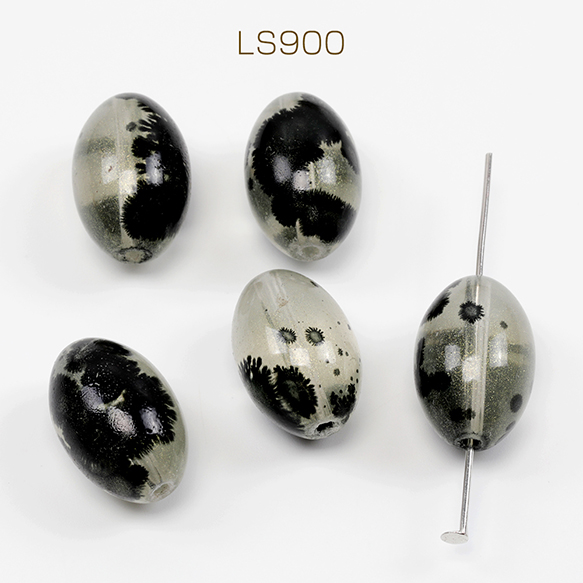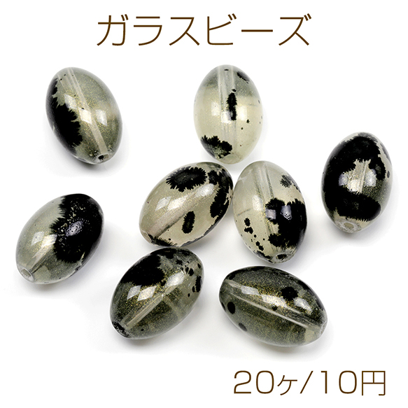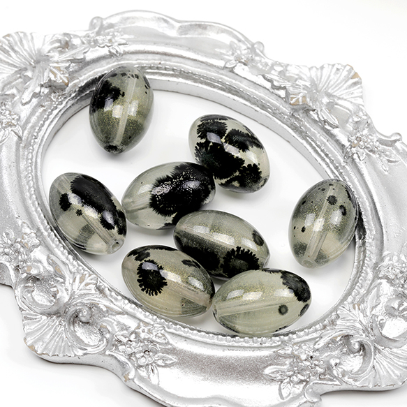 ガラスビーズ 楕円形 オーバル 墨模様 波紋 約13×20mm(20ヶ)