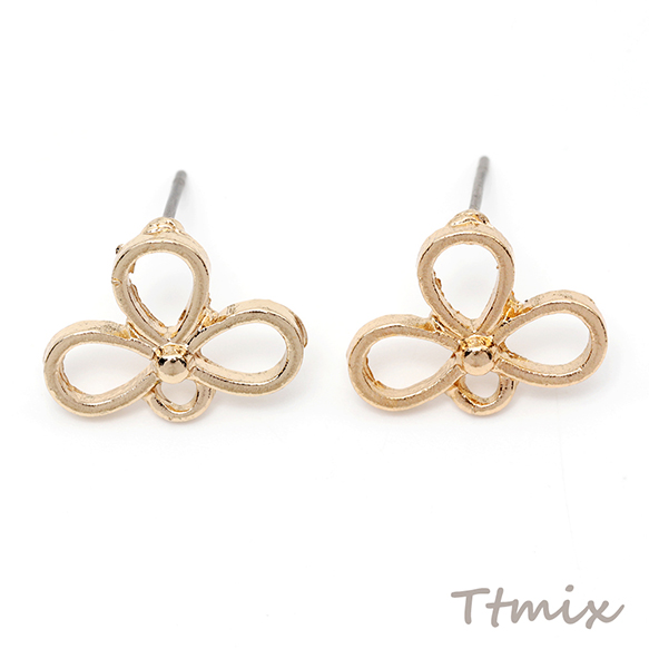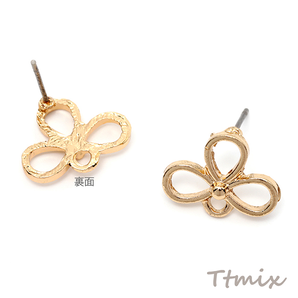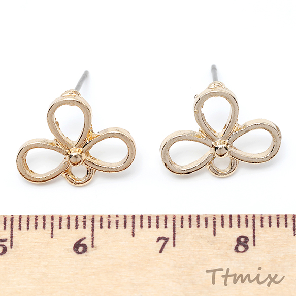 ピアス金具 1カン付 フラワー 三つ葉 ゴールド 約12×15mm(4ヶ)