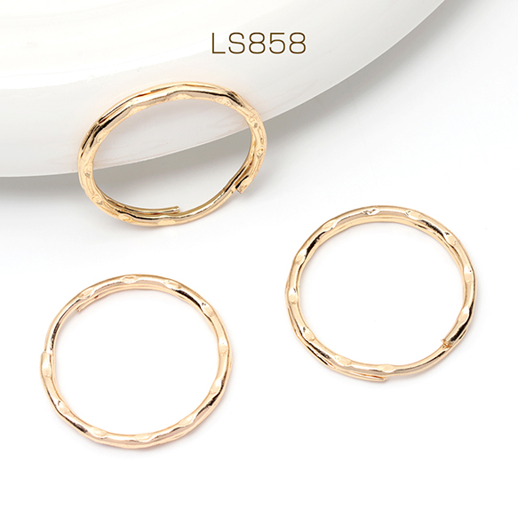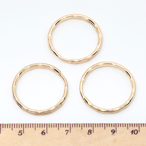 キーリング 鉄製 キーホルダー金具 エンボス加工 ゴールド 約25mm(10ヶ)
