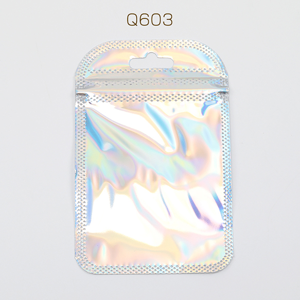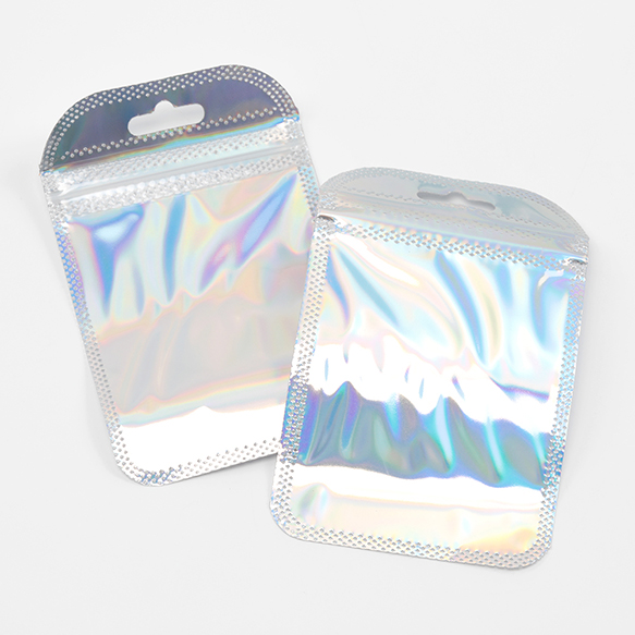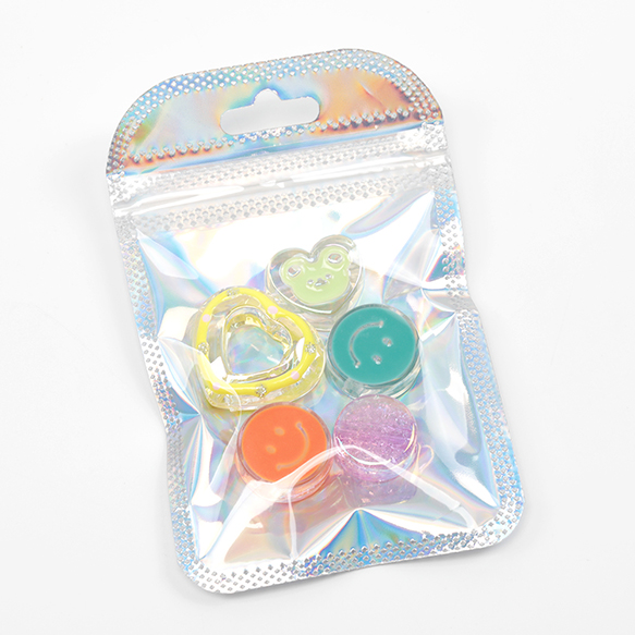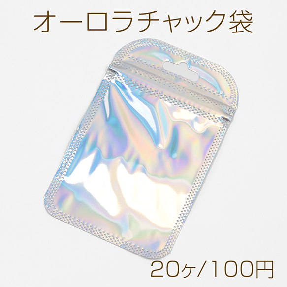 オーロラチャック袋 片面透明 穴付き OPP袋 ラッピング袋 ジュエリー入れ 約7×11cm