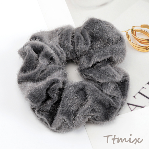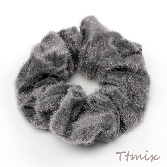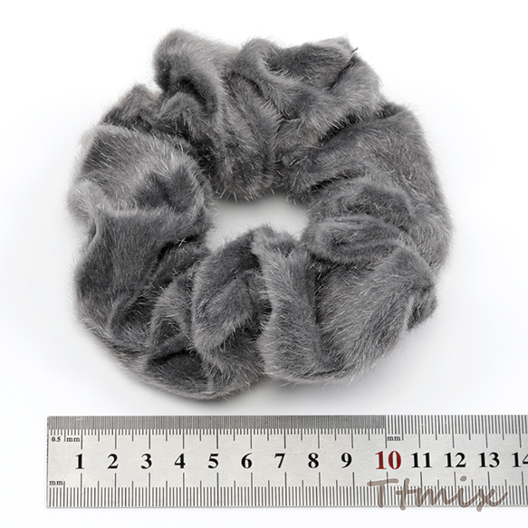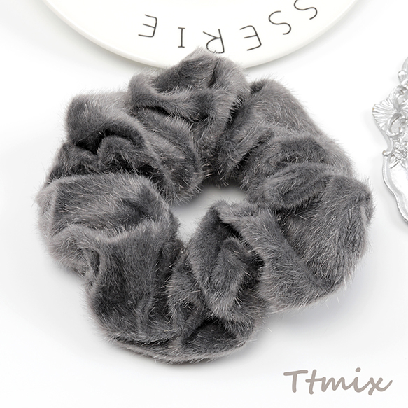シュシュ 秋冬もこもこ ふわふわ ヘアゴム グレー 約12cm(1ヶ)