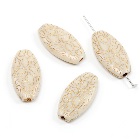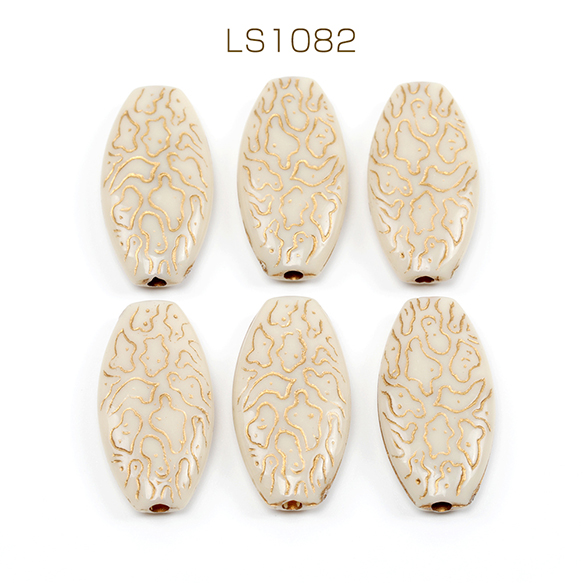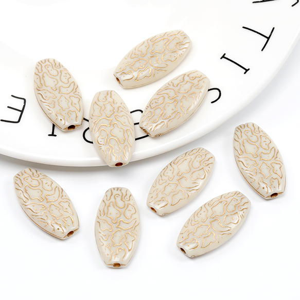 アクリルビーズ オーバル 楕円 金彩 アンティーク風 約14×27m(10ヶ)