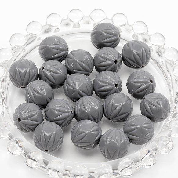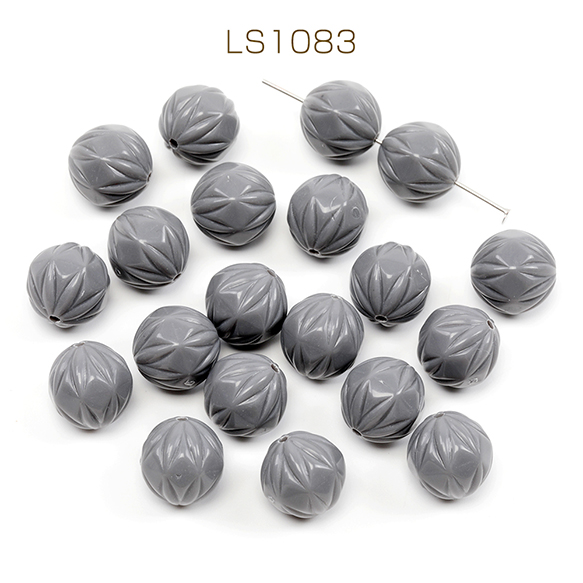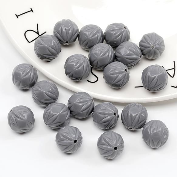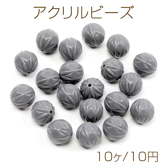 アクリルビーズ 彫刻風 アンティーク風 グレー 約14mm(10ヶ)