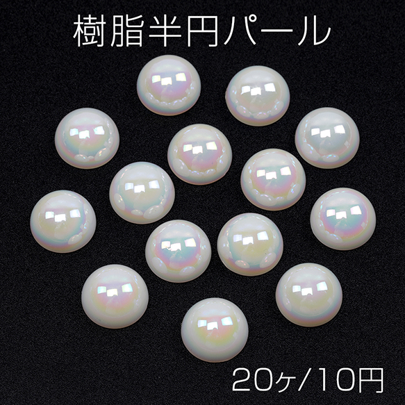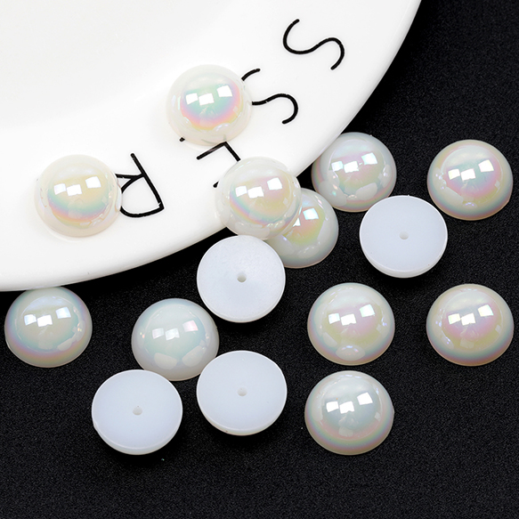 樹脂半円パール アクリル製 オーロラ 半丸 貼り付けパーツ デコパーツ 約14mm(20ヶ)