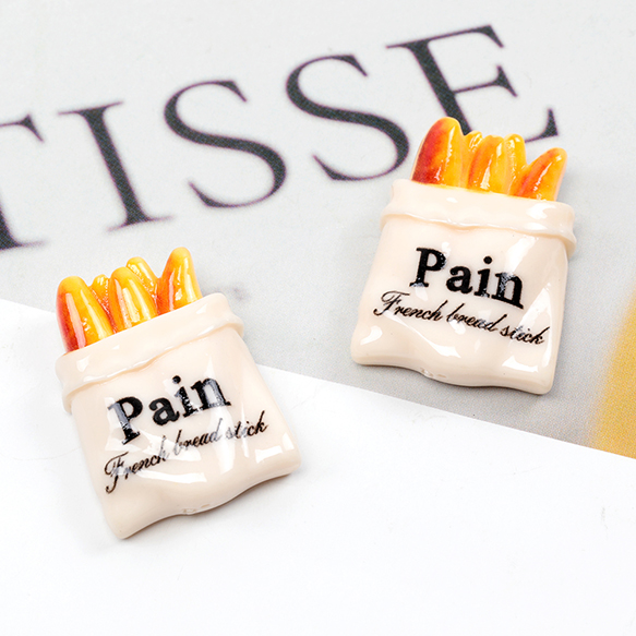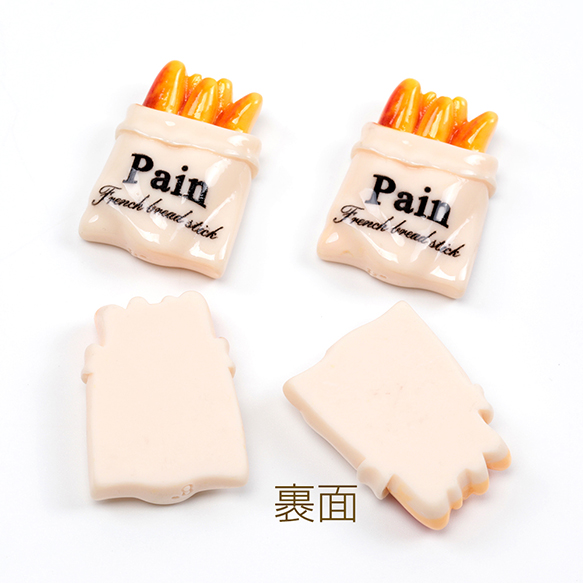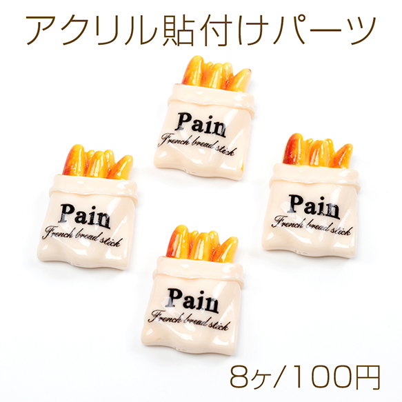 アクリル貼り付けパーツ フランスパン 食べ物 面白い ユーモア 食品サンプル 約22×30mm(8ヶ)