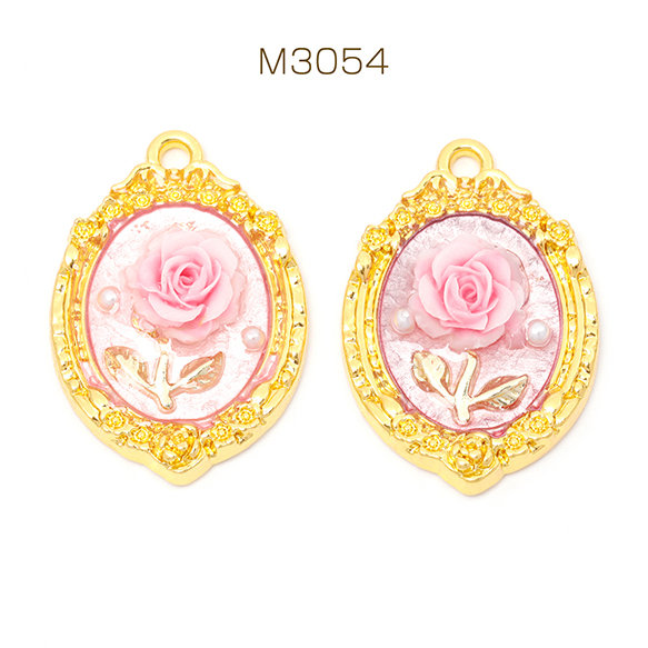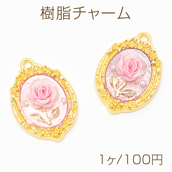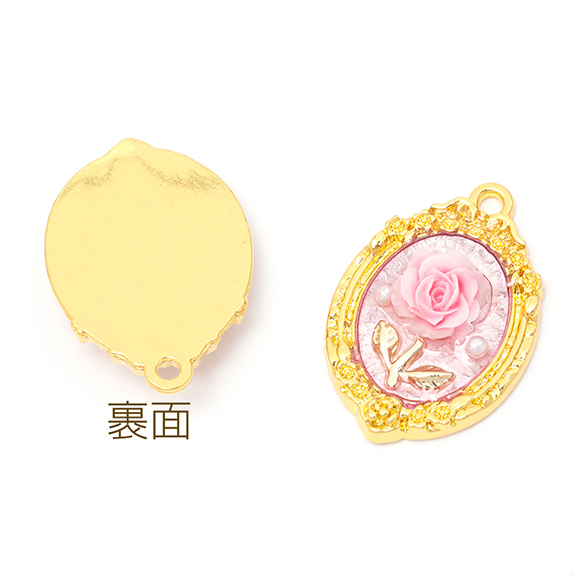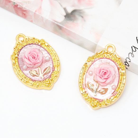 樹脂チャーム 絵画風 バラ ローズ フラワー 花 アンティーク風 1カン 約21×31mm(1ヶ)