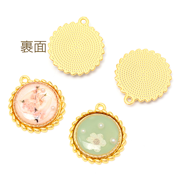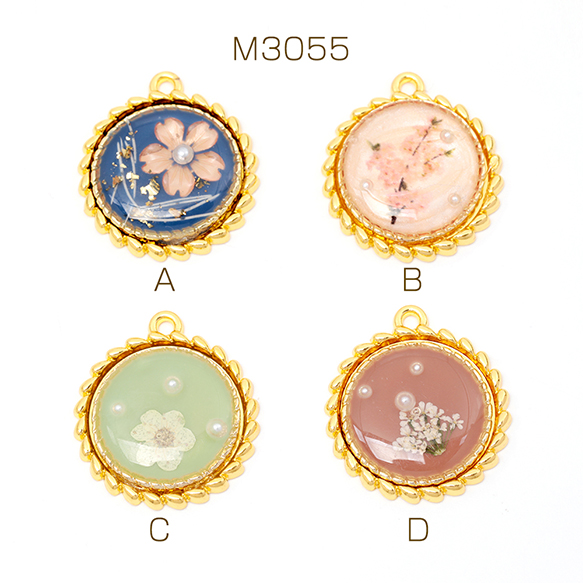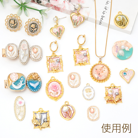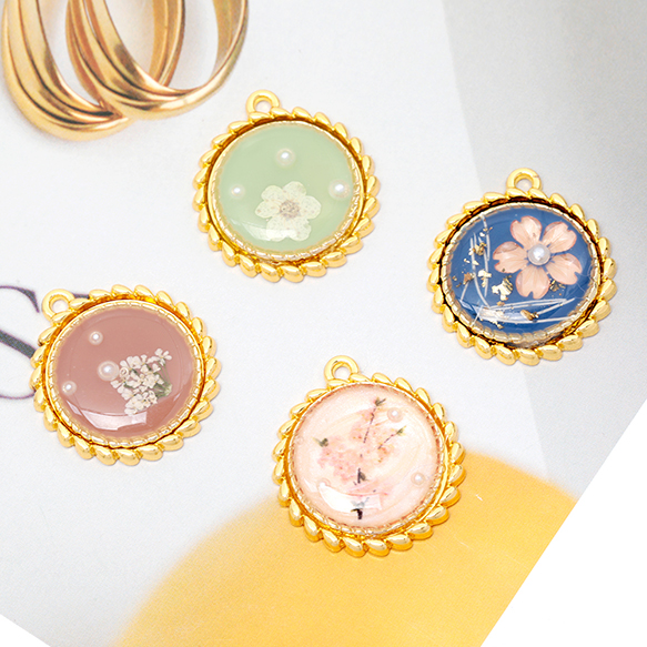 樹脂チャーム 絵画風 フラワー 花 アンティーク風 1カン 約25×28mm(1ヶ)