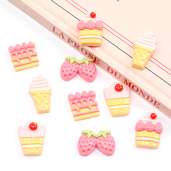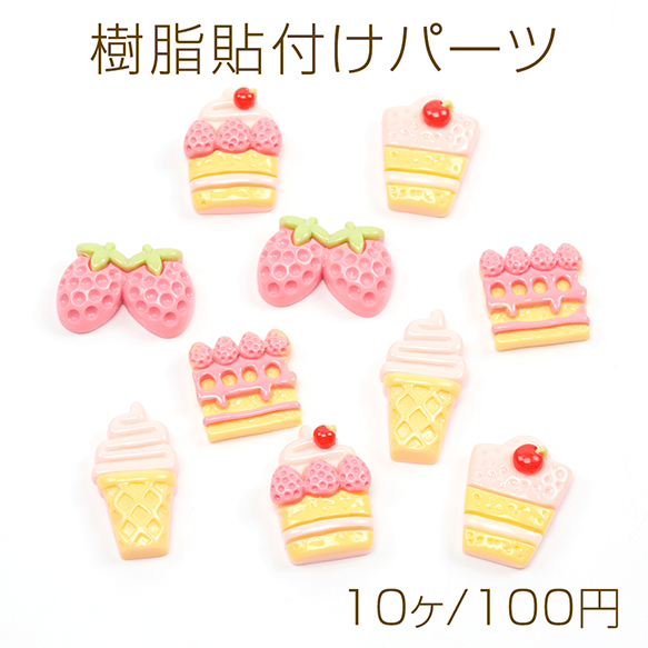 樹脂貼付けパーツ ケーキ 食品サンプル カラフル レジン ※種類ランダム(10ヶ)