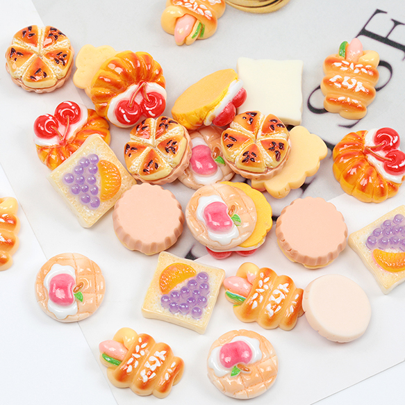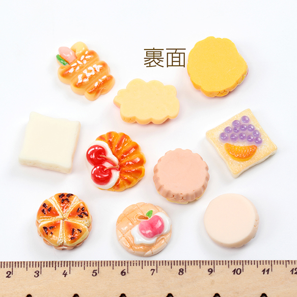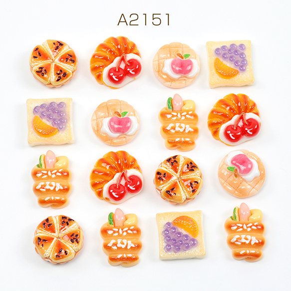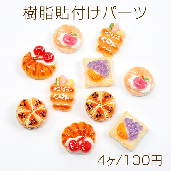 樹脂貼付けパーツ 菓子パン フルーツ スイーツ 食品サンプル カラフル レジン ※種類ランダム(4ヶ)