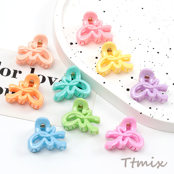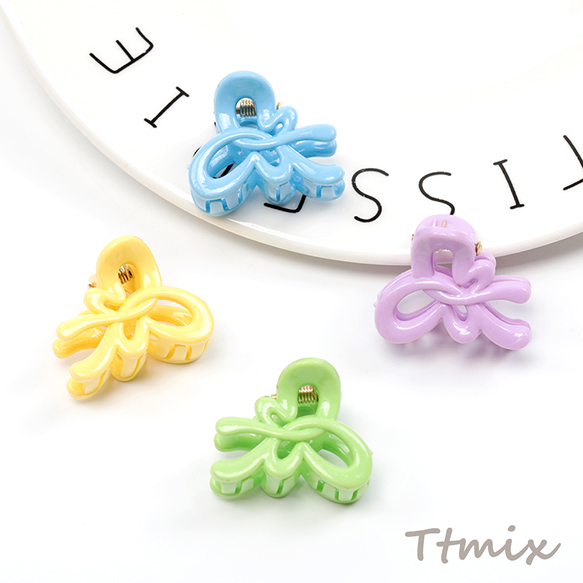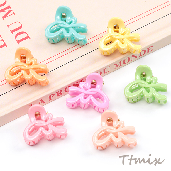 ミニクリップ 蝶モチーフ リボン ヘアクリップ ヘアアクセサリー 春夏カラー ※カラーランダム 約21×27mm(20ヶ)