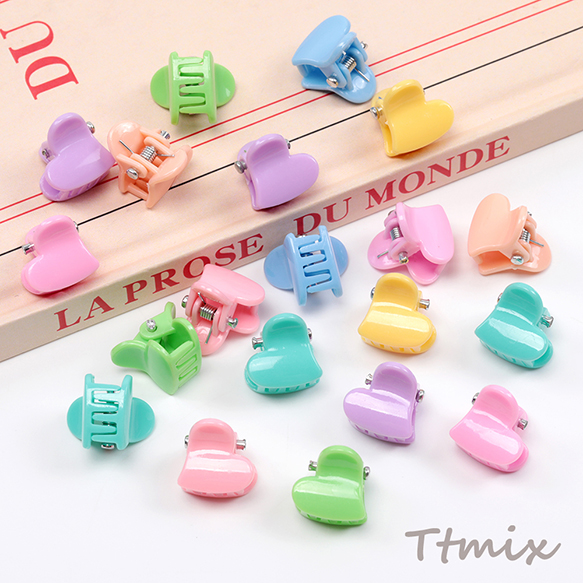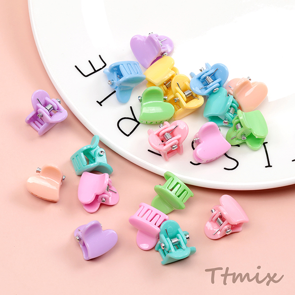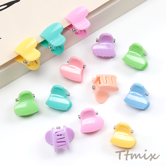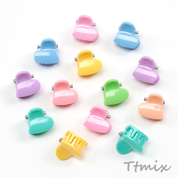 ミニクリップ ハート ヘアクリップ ヘアアクセサリー パステルカラー 春夏カラー ※カラーランダム 約12×13mm(20ヶ)