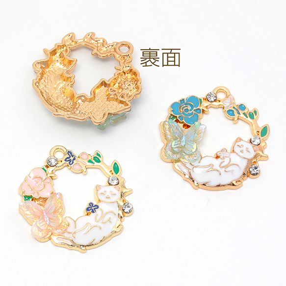 エポチャーム フラワー 蝶々 猫 キャット チャームパーツ 合金製 約26×26mm(1ヶ)