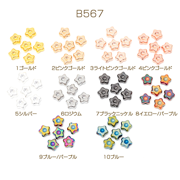 ガラスビーズ 星 スター メッキ加工 約11mm(10ヶ)