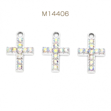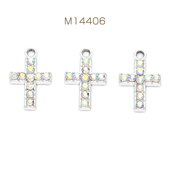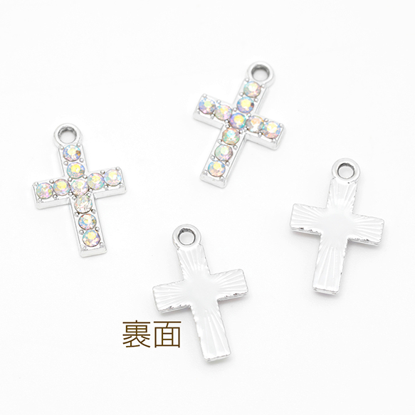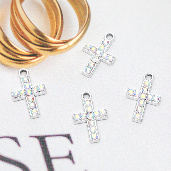 クロスチャーム クロス 十字架モチーフ オーロラカラーラインストーン付き カン付き 合金製 約10×16mm(4ヶ)