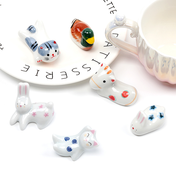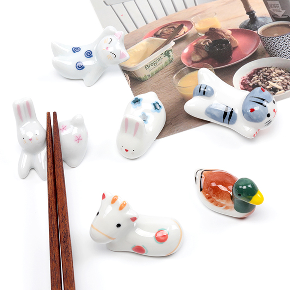 箸置き 馬 うさぎ 猫 かも 陶器 はしおき 動物 新生活 卓上小物 キッチン用品食器 インテリア小物 (1個入り)