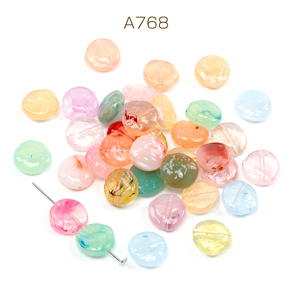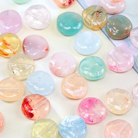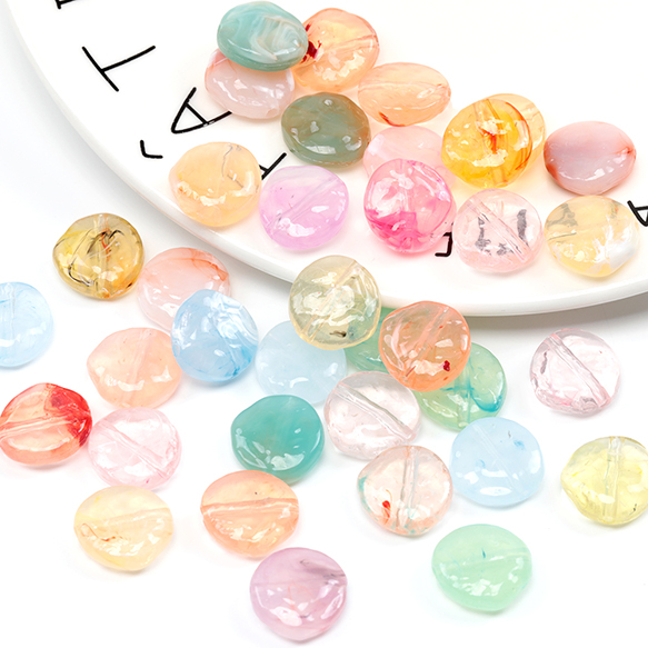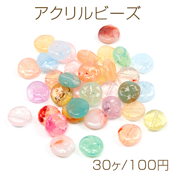 アクリルビーズ ラウンドボタン カラーミックス 穴あり 約14mm(ランダム30ヶ)