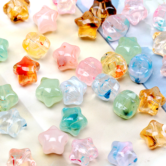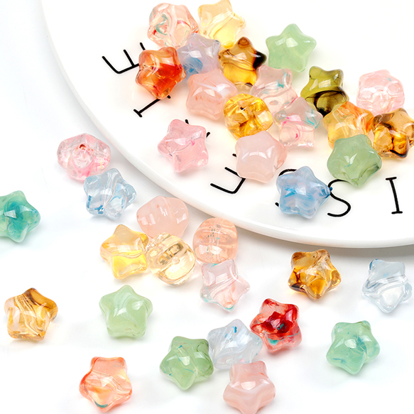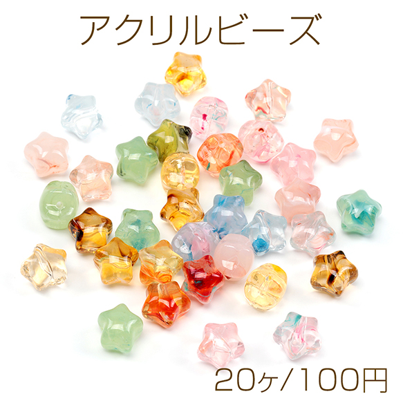 アクリルビーズ 星 スター カラーミックス 穴あり 約11×12mm(ランダム20ヶ)