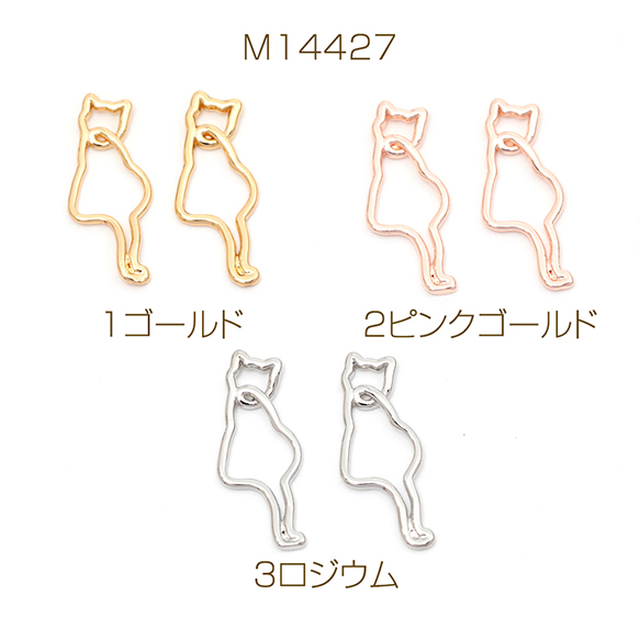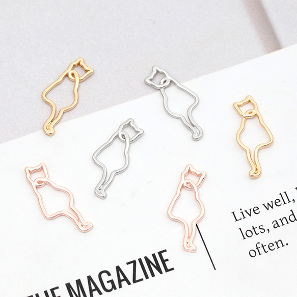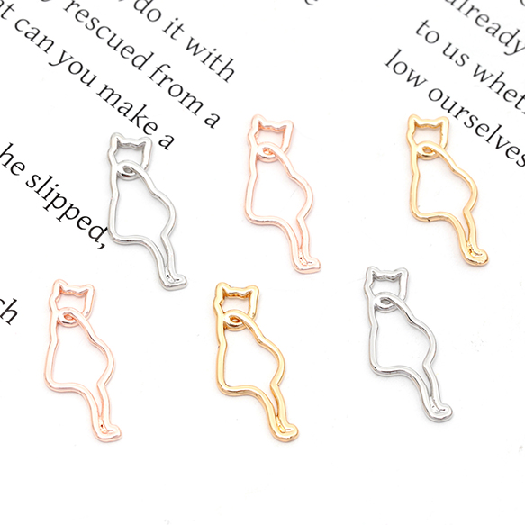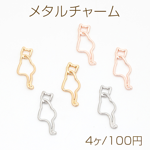 メタルチャーム コネクターチャーム チャームパーツ 猫 ネコ 銅製 約7×16mm(4ヶ)
