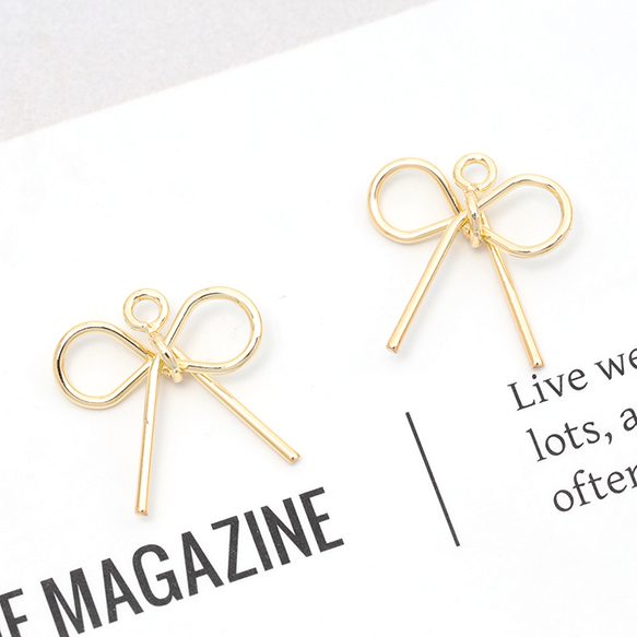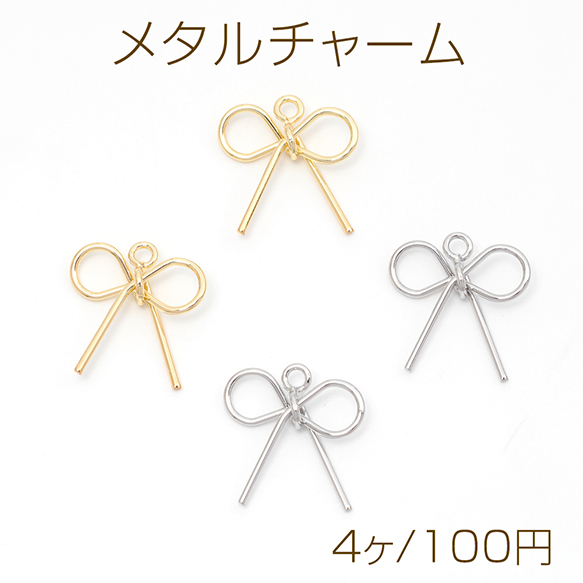 メタルチャーム チャームパーツ リボン 銅製 約15×15mm(4ヶ)