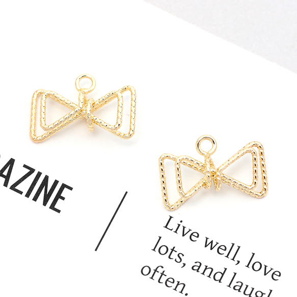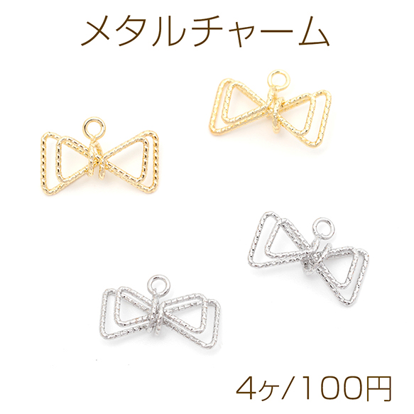メタルチャーム チャームパーツ リボン 銅製 約10×15mm(4ヶ)
