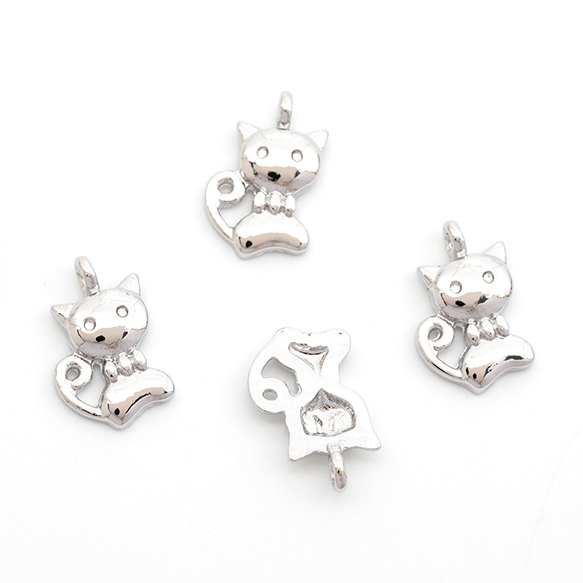 メタルチャーム 猫 合金製 約6×10mm(8ヶ)