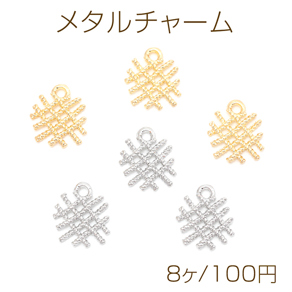 メタルチャーム 編み込み ねじれ デザインチャーム 合金製 約10×12mm(8ヶ)