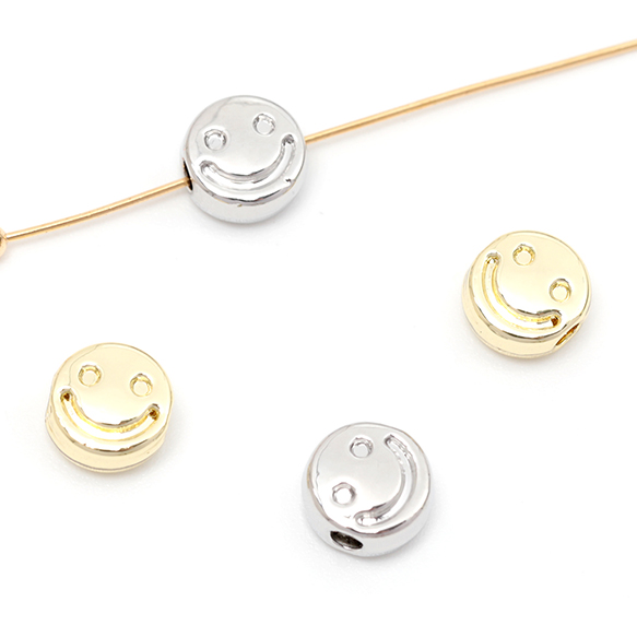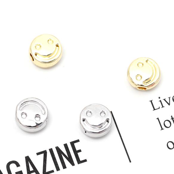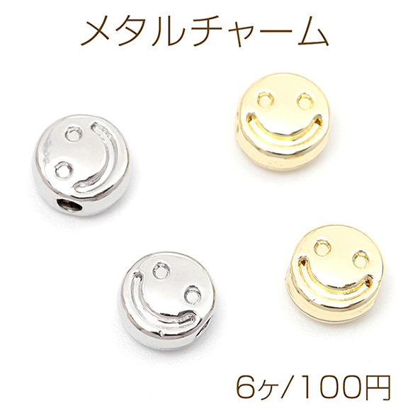 メタルチャーム メタルビーズ スマイル 横穴 合金製 約6mm(6ヶ)