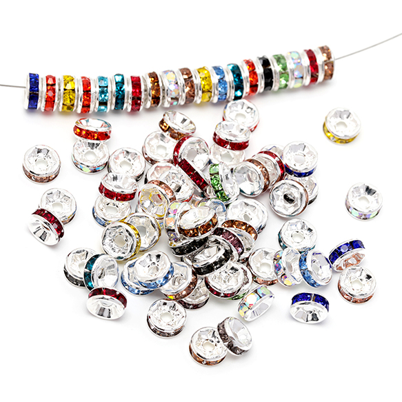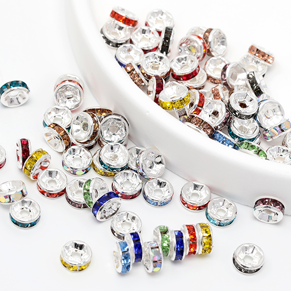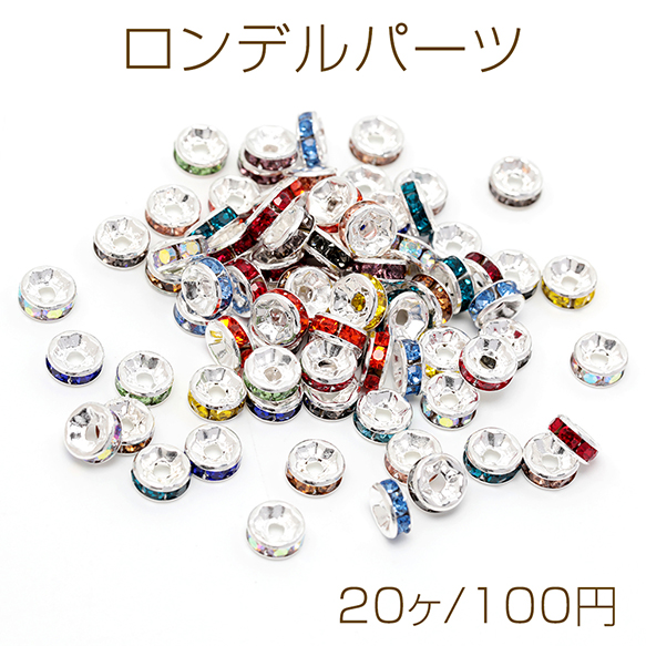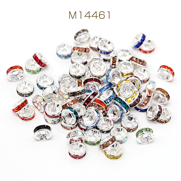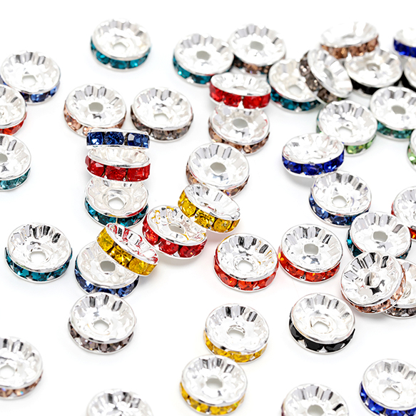 ロンデルパーツ 平型 カラーミックス ランダム 銅製 ストーン付き スペーサービーズ メタルビーズ 約6mm(20ヶ)